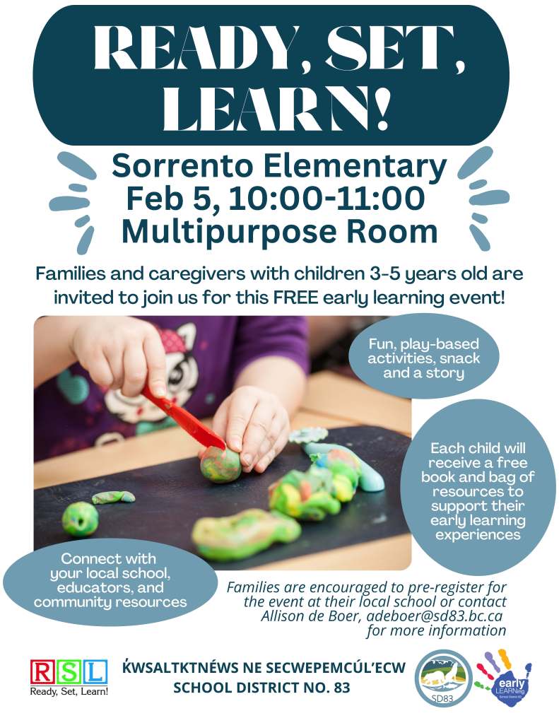 Families and caregivers with children three to five years old are invited to this free early learning event. Save the date!